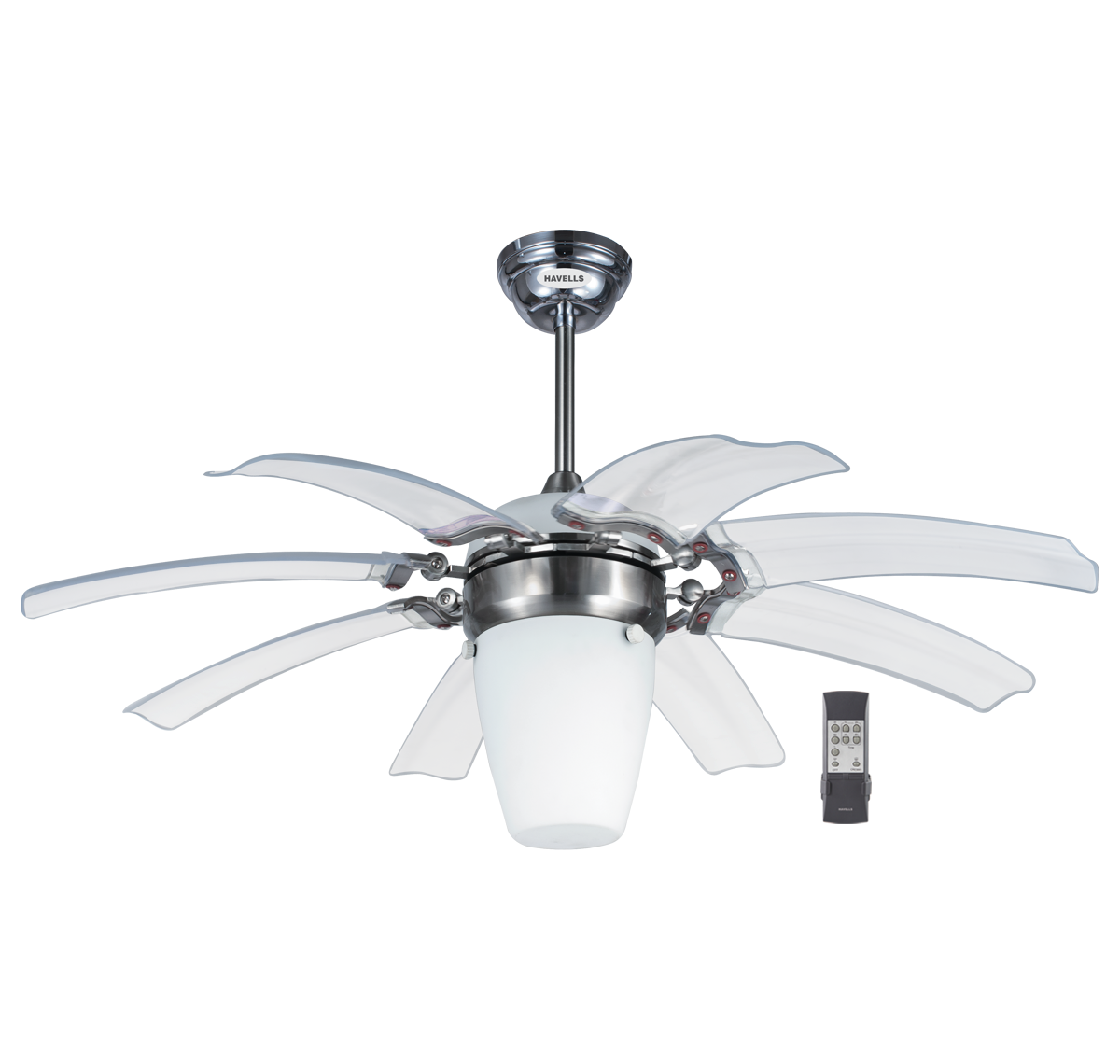 | Finish | Brushed nickel finish with 8 transparent blades |
